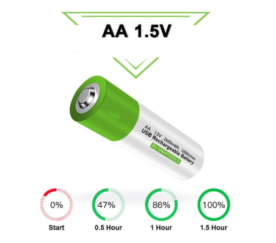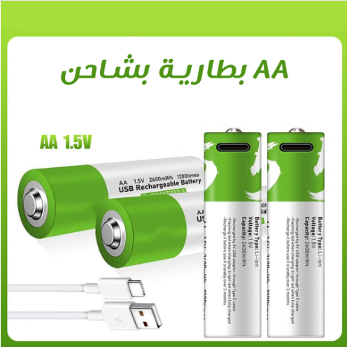 - الاسم: بطاريات AA ليثيوم قابلة لإعادة الشحن