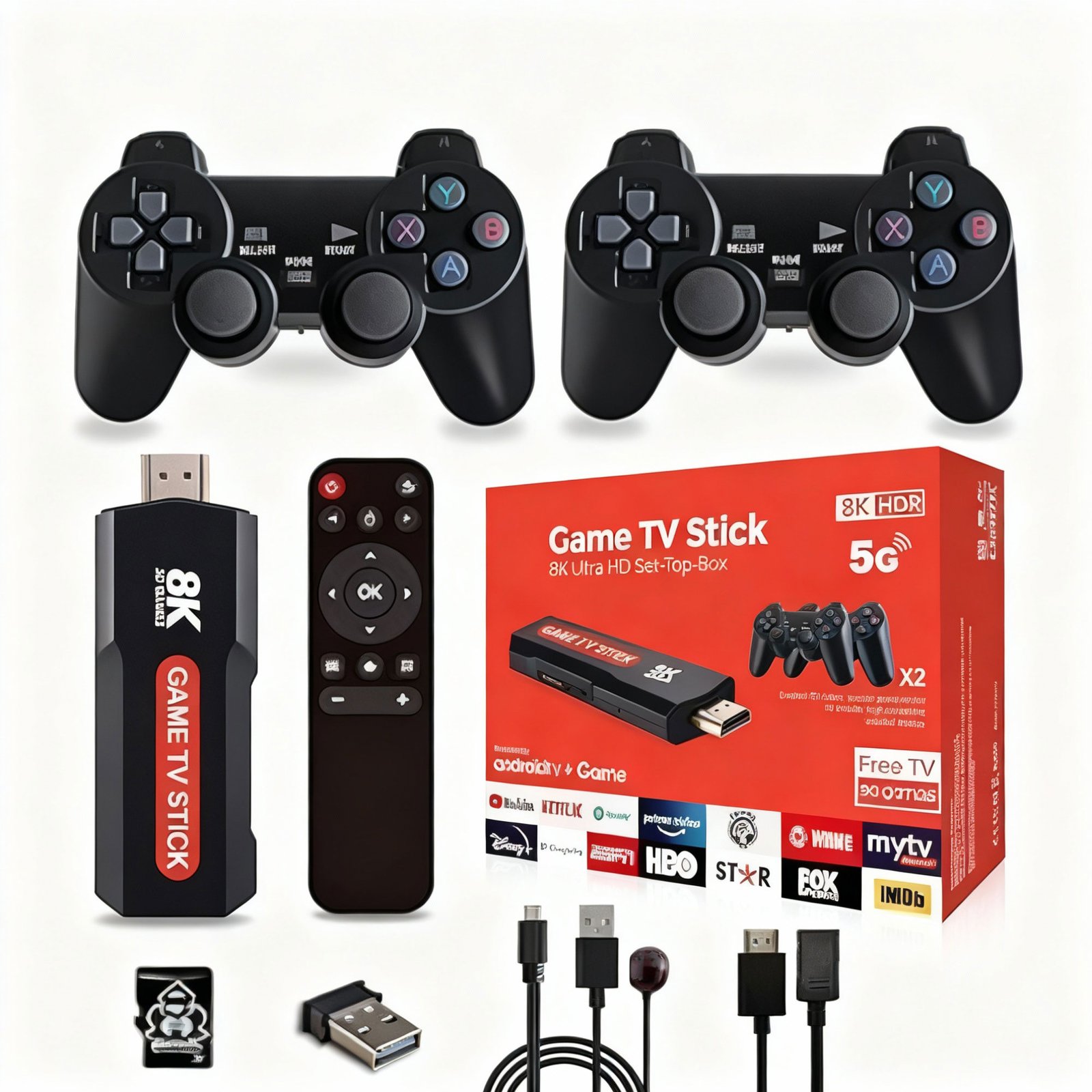 • المحتوى: جهاز محمول شفاف، TV Game Stick، وحدتين تحكم لاسلكيتين