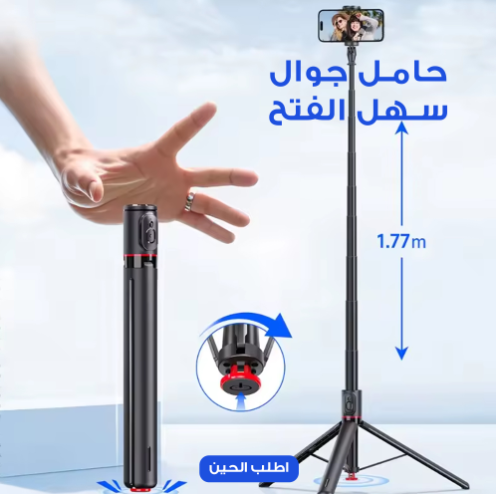 - حامل جوال عملي يوفر عصا سيلفي وحامل ثلاثي في جهاز واحد