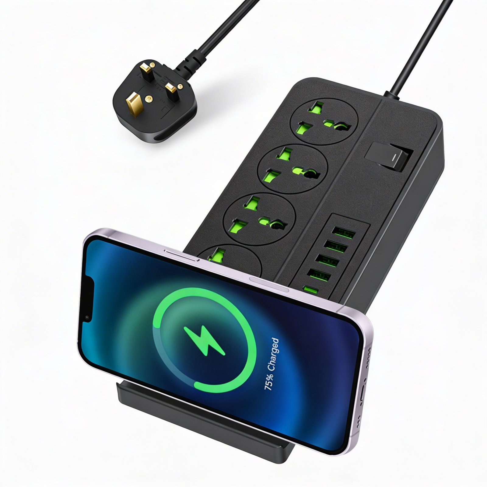 مشترك بشاحن ذكي بتصميم عمودي يوفر لك شحن وتشغيل عدة أجهزة في نفس الوقت بسهولة. مثالي لتنظيم المساحة وتقليل الفوضى في المنزل أو المكتب.